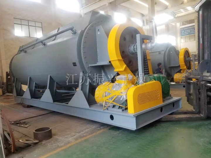圓盤片傳熱面具有自清潔功能。物料顆粒與圓盤面的相對(duì)運(yùn)動(dòng)產(chǎn)生洗刷作用,能夠洗刷掉圓盤面上附著物料,使運(yùn)轉(zhuǎn)中一直保持著清潔的傳熱面。振干空心圓盤污泥干燥機(jī)的殼體為O型,殼體內(nèi)一般安排一根空心攪拌軸。殼體有密封端蓋與上蓋,防止物料粉塵外泄及收集物料溶劑蒸汽。出料口處設(shè)置一擋扳,保證料位高度,使傳熱面被物料覆蓋而充分發(fā)揮作用。傳熱介質(zhì)通過(guò)旋轉(zhuǎn)接頭,流經(jīng)殼體夾套及空心攪拌軸,空心攪拌軸依據(jù)熱介質(zhì)的類型而具有不同的內(nèi)部結(jié)構(gòu),以保證較佳的傳熱效果。